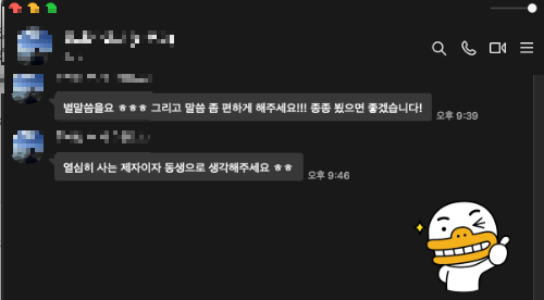 좋은 동생이었는데 비슷한 시기 회사를 나와
