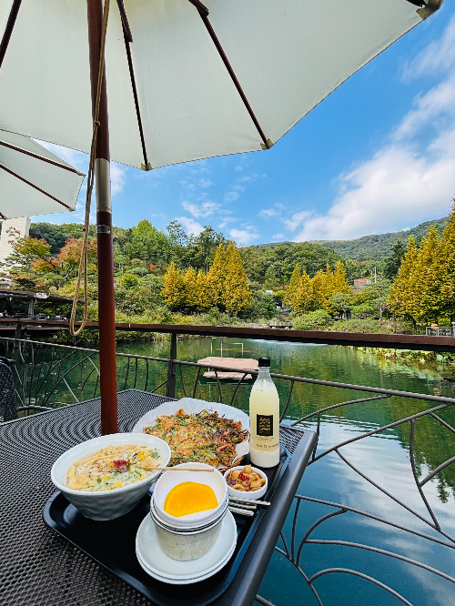 시원한 막걸리 한잔에 파전 한 조각 그리고 멋진 풍경