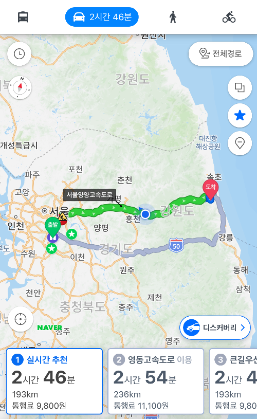 2시간 반이면 충분히 다닐 수 있으니 도로여건이 정말 좋아졌다.