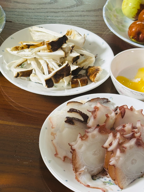 솔향 가득한 귀한 자연산 양양송이와 동해안 문어