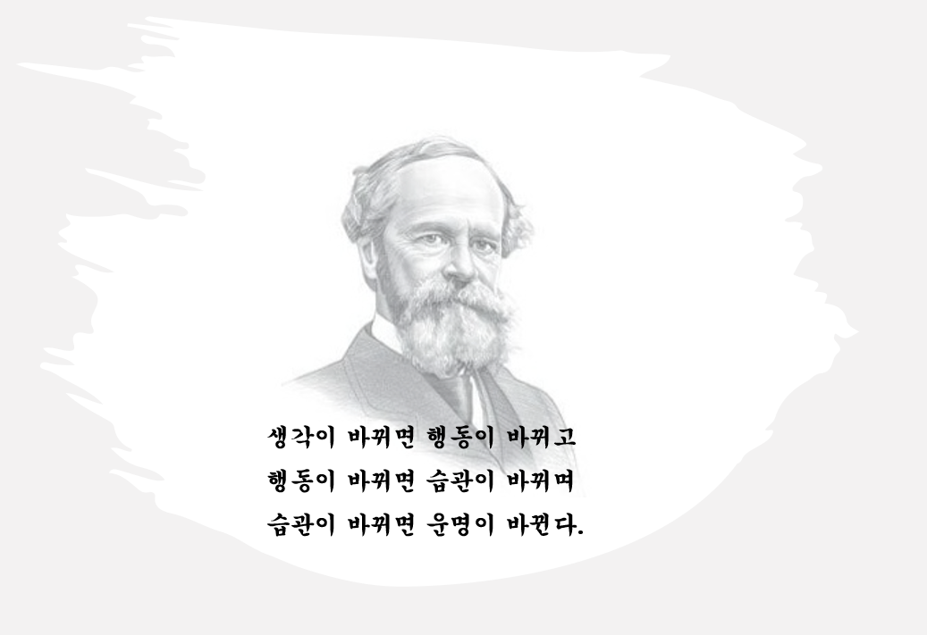"생각이 바뀌면 행동이 바뀌고, 행동이 바뀌면 습관이 바뀌며, 습관이 바뀌면 운명이 바뀐다" 미국 심리 철학자 윌리엄 제임스가 한 유명한 말입니다. 좋은 행동과 생각이 운명을 바꿀 수 있듯이 잘못된 행동도 반복되면 잘못을 알지 못하게 됩니다. 이것이 습관이 되어 버릇이 되고 몸에 배어 사고의 과정을 거쳐 말과 행동이 됩니다.