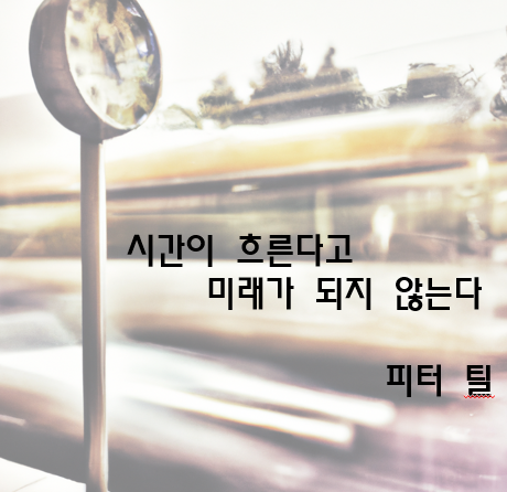 시간은 단순히 우리가 행동할 때 필요한 도구 중 하나일 뿐 우리가 행동하지 않고 시간만 지나가기를 기다린다면, 미래는 우리가 원하는 대로 절때 바뀔리 없다.