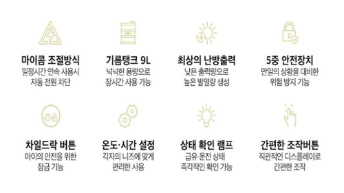 다른 난방 기기들과 달리, 팬히터는 히터의 열기를 토대로 따뜻한 공기를 집안 전체에 균일하게 순환시켜 주기 때문에 따뜻함이 집안 구석구석까지 전해져요. 또 열효율이 뛰어나서 전기난로에 비해 훨씬 경제적이에요. 제일 중요한 건 한 번에 쉽게 사용할 수 있어서, 복잡한 설정 같은 건 필요 없다는 점이죠. 기름통도 9L로 넉넉하고 사용해 보니 등유 20L 한말이면, (24~5도) 약 모드로 하루 5~6시간씩 일주일은 넉넉히 사용했습니다.