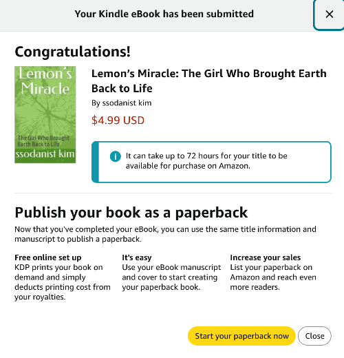 잘되면 3일 첫 번째 책이 한국도 아닌 아마존에 리스팅 된다.