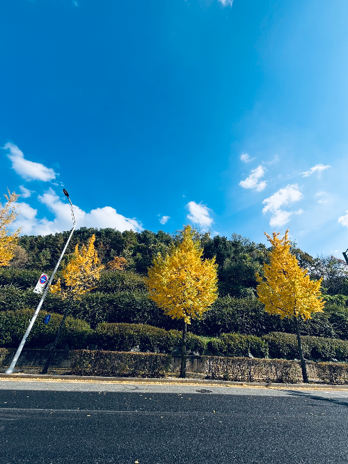 맑고 높은 하늘아래 은행잎은 노랗게 변해 낙화하고