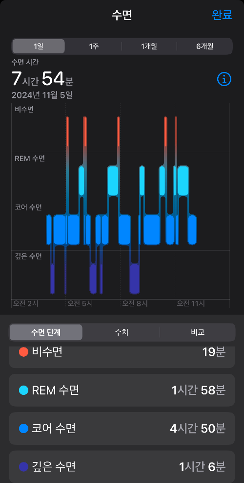 최근 몇일 애플 워치를 차고 잠을 자 보고 있다.