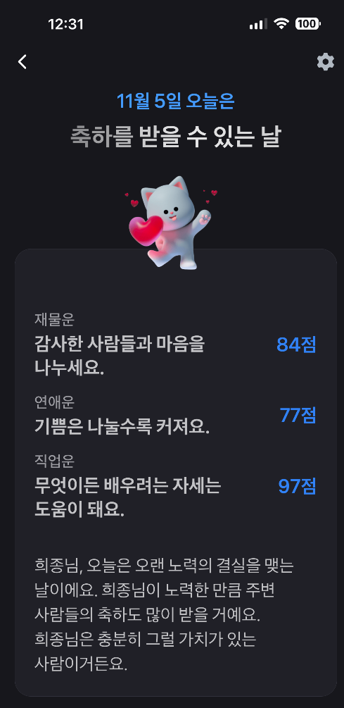 요즘은 토스의 은복이라는 캐릭터가 운세를 보내주는데