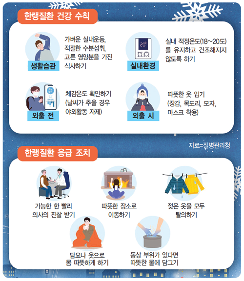 두꺼운 옷, 담요 준비와 난방 기구 점검이 필요합니다.