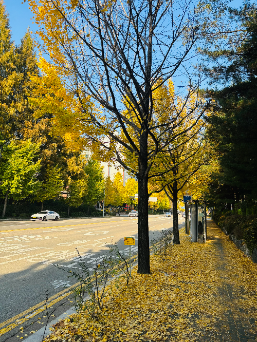 오늘 버스정류장으로 가는 길은 온통 은행나무 잎으로 가득하다.