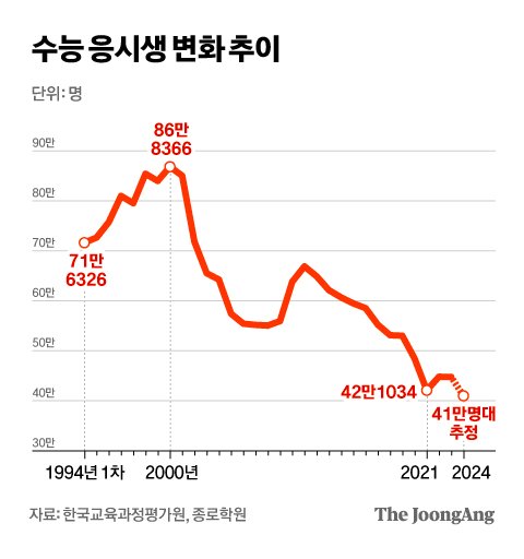 수능응시생 숫자를 보면 그 변화가 확연하다.