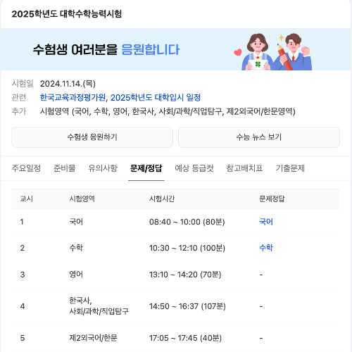 오늘은 2025 대학 수학능력 시험이 있는 날이다.