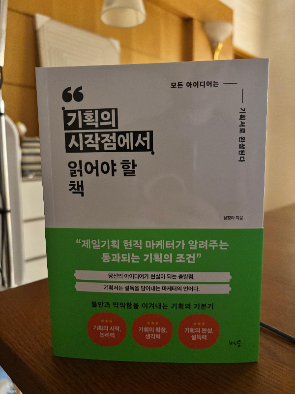 그런 기억을 가지고 또 반복하며 20여년 직장 생활을 하고 있다. 기획단 부터 실행까지 전부분을 지금껏 해오고 있지만 아직도 명확한 또는 완벽이나 완전한 기획이라는 감이 없다. 그런데 최근 제일기획의 현직 마케터가 쓴 '기획의 시작점에서 읽어야 할 책'은 잡히지 않을것 같던 정답의 실마리를 어느정도 명확히 하는 기회였다. 저자는 첫 페이지부터 명확하게 선언한다. 기획은 막막함에서 출발하여 설득으로 완성되는 과정이라고. 그리고 기획서는 단순히 아이디어를 나열하는 문서가 아니라 의사결정자의 스트레스를 해소하는 명확한 논리를 제공하는 도구라고 말이다.
