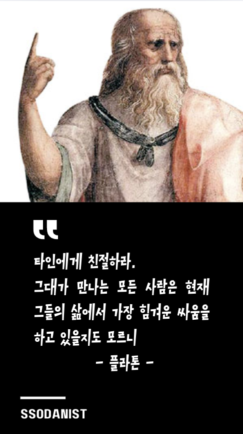 플라톤은 이렇게 말했다. "타인에게 친절하라.