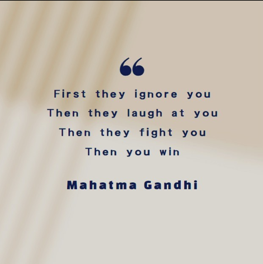 간디처럼 국가인 인도의 독립뿐 아니라 전 세계의 비폭력운동에 영감을 불어넣을 수는 없겠지만 미약함에도 불구하고 변화를 위한 시도를 멈추지는 말아야 한다.