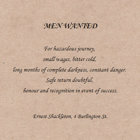 어니스트 새클턴의 탐험 크루 모집문, 내 인생 최고의 취업공고