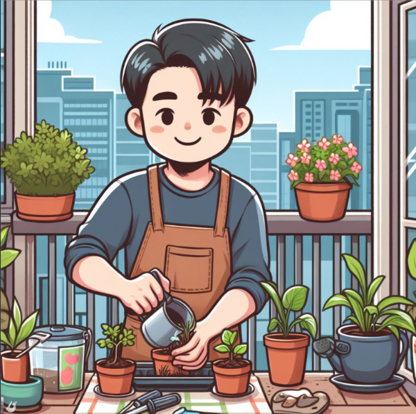 식사를 마치고 집으로 돌아와 쇼핑한 꽃들에 물을 흠뻑 주고