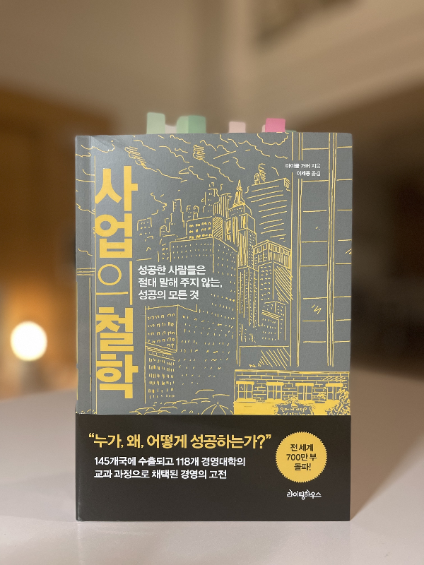 개인적으로 이 책 '사업의 철학'은 경영과 사업에 대한 철학적인 사고의 중요성을 강조하고 있으며 또한 이론에 머무르지 않고 실현하기 위한 방법을 제시하는 데 있어서 충분히 가치 있는 책이라 생각한다. 이 책에서 저자가 전달해 주는 지혜와 경험들은 독자들에게 큰 영감을 주고 삶과 사업에 좋은 길잡이 역할을 할 거라 생각한다.