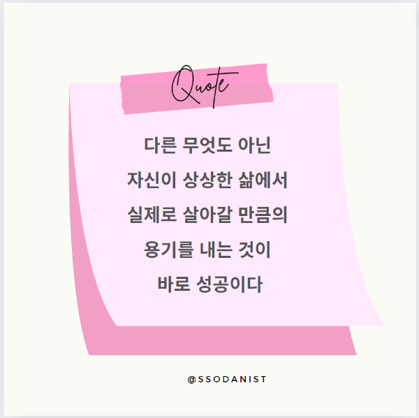 그대의 용기가 상상하는 성공으로 이끌길 격하게 응원한다.