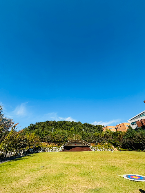 하늘도 맑고 잔디가 적당히 자라 있서 뛰어놀기 좋고