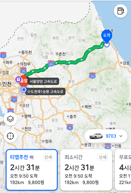 금요일 오전 일어나는 데로 준비를 하고 네비를 찍어본다.